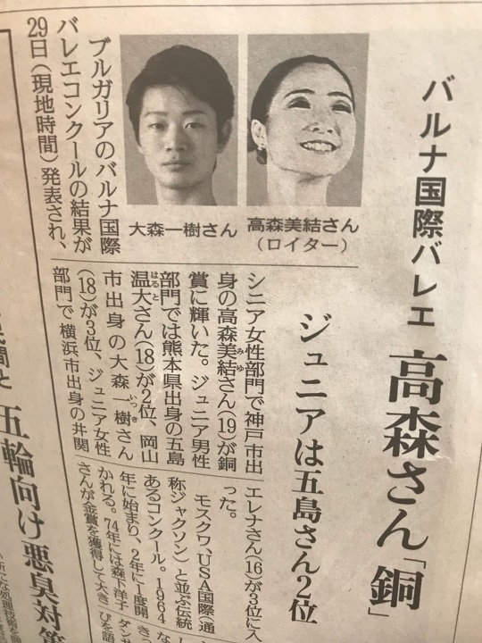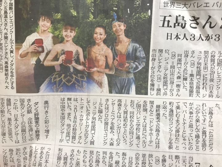 またバルナ国際コンクールで入賞した京都バレエ専門学校高等課程卒業の大森一樹君の記事がクララ10月号に掲載されました!